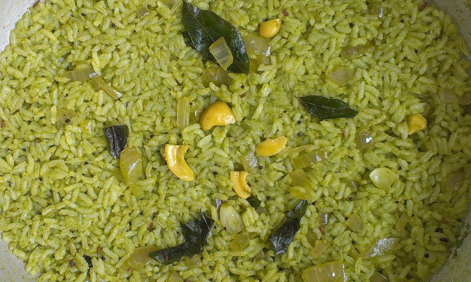 ಆಮೇಲೆ ೧/೨ ಕಪ್ ಈರುಳ್ಳಿ ಹಾಕಿ ಹೊಂಬಣ್ಣ ಬರುವ ತನಕ ಫ್ರೈ ಮಾಡಿ ನಂತರ ಉಳಿದ ಗೋಡಂಬಿ ಮತ್ತು ರುಬ್ಬಿದ ಕೊತ್ತಂಬರಿ ಪೇಸ್ಟ್ ಹಾಕಿ ಹಸಿ ವಾಸನೆ ಹೋಗುವ ತನಕ ಫ್ರೈ ಮಾಡಿ. ಅದಕ್ಕೆ ರುಚಿ ಗೆ ತಕ್ಕಷ್ಟು ಉಪ್ಪು ಹಾಗೂ ಸ್ವಲ್ಪ ನಿಂಬೆ ರಸ ಹಾಕಿ, ಅನ್ನ ಹಾಕಿ ಕಲಸಿರಿ.